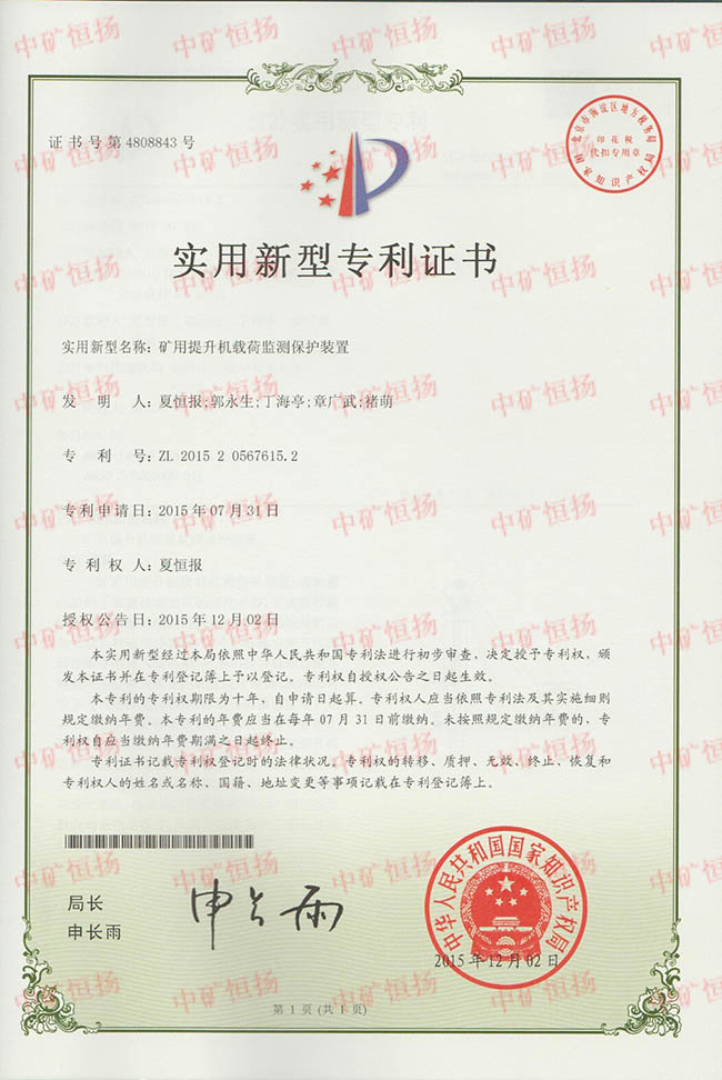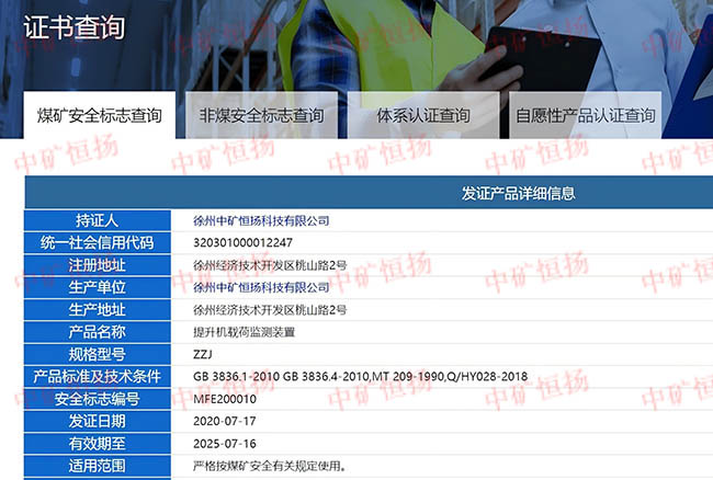 陜西彬煤集團蔣家河煤礦有線式提升載荷監測裝置