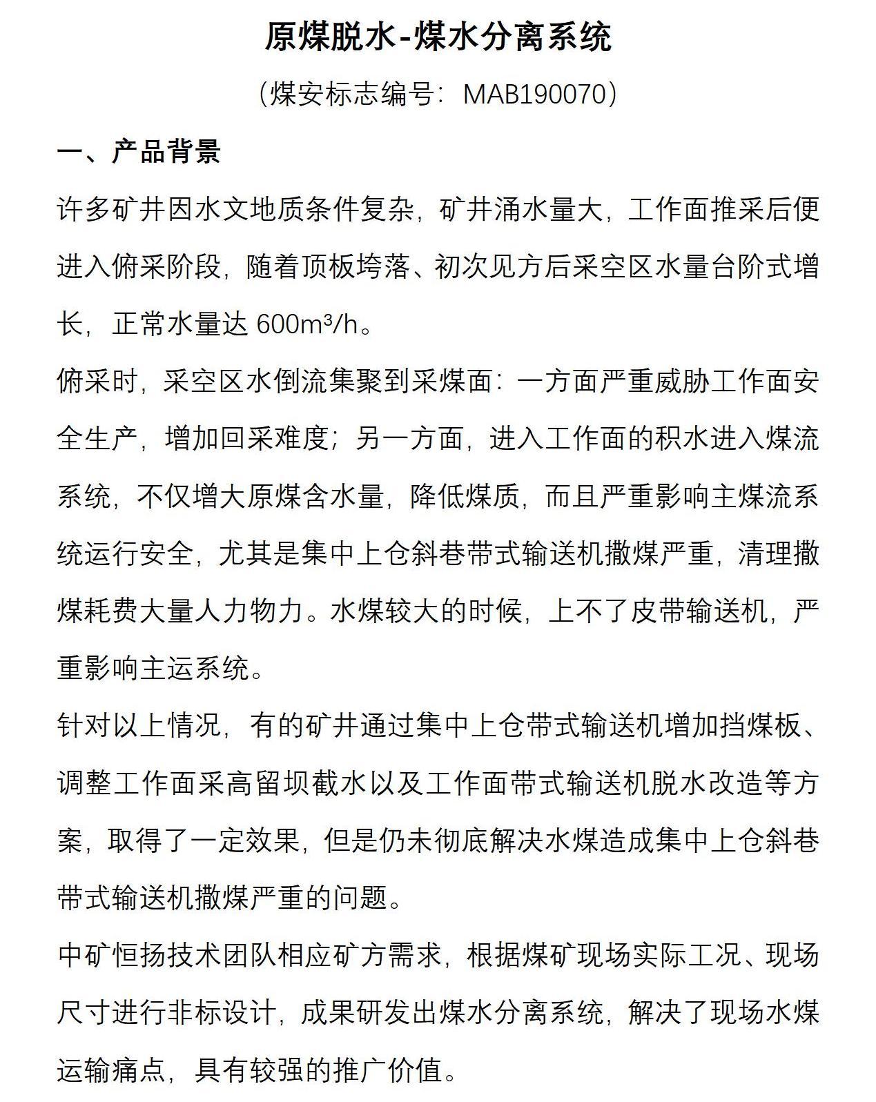 采煤面煤水分離系統(tǒng)